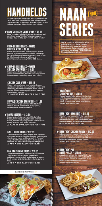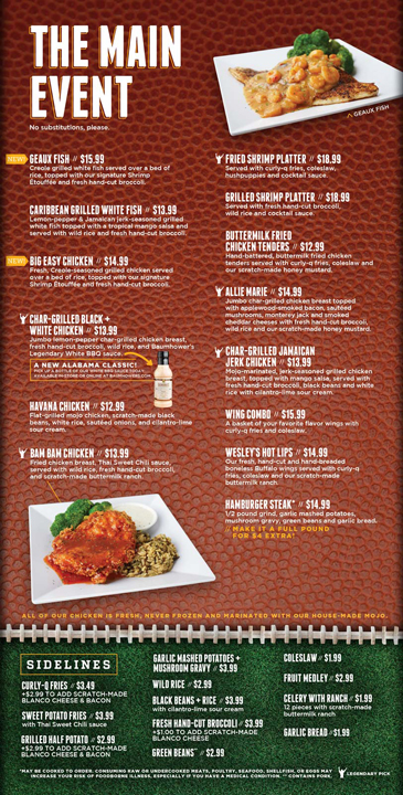 Located in Mobile, Alabama, Baumhower's Victory Grille offers a vibrant mix of flavors and a sports bar ambiance that’s simply unmatched. Their menu is a delightful exploration of American comfort food, featuring options like the mouthwatering Lunch Tailgate Burger, made with a custom grind of USDA Choice beef and paired with crispy curly fries for just $11.99. If seafood is your preference, the Bam Bam Shrimp Tacos deliver a crispy and flavorful twist on Southern cuisine.